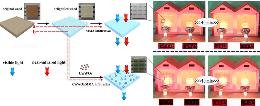 近期,国产亚洲精品美女久久久材料科学与工程学院高彦峰教授课题组在节能透明木头窗研究上取得了新进展,相比普通玻璃窗在10分钟可以将室内温度从21℃升至41.5℃,透明木头窗室内只升至26.8℃,研究成果《Transparentwood containing CsxWO3 nanoparticles for heat-shielding windowapplications》发表在英国皇家化学会的期刊《材料化学A》(J. Mater. Chem. A,2017, DOI: 10.1039/C7TA00261K ),得到领域内著名科学家CGGranqvist高度点评“This is an innovative idea”,并以“Who says wooden windows wouldn’t work”为题在英国皇家化学会化学世界(https://www.chemistryworld.com/news/wooden-windows-could-make-better-buildings/3007068.article)上进行专题报道。